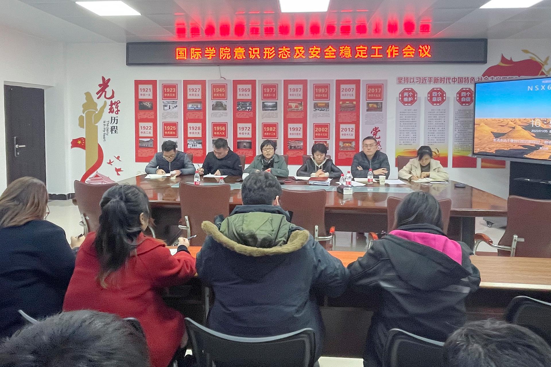 1月5日下午,国际学院在花江校区国际学术文化交流中心党员之家会议室召开意识形态及安全稳定工作会议,学院全体教职工参加会议。