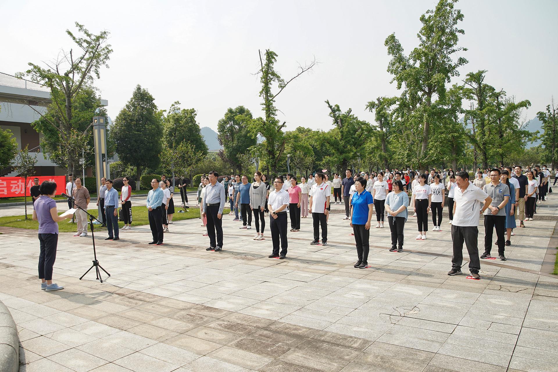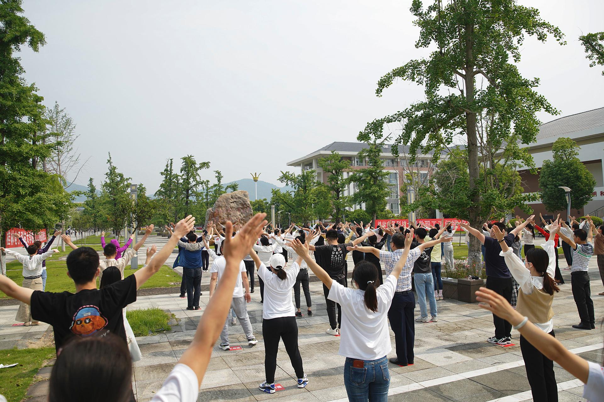 随后,参加仪式的教职工代表一起做了两遍广播体操,在熟悉的广播体操旋律中舒展双臂,昂首挺胸,迈开双腿,在运动中传递“健康工作、幸福生活”的理念。