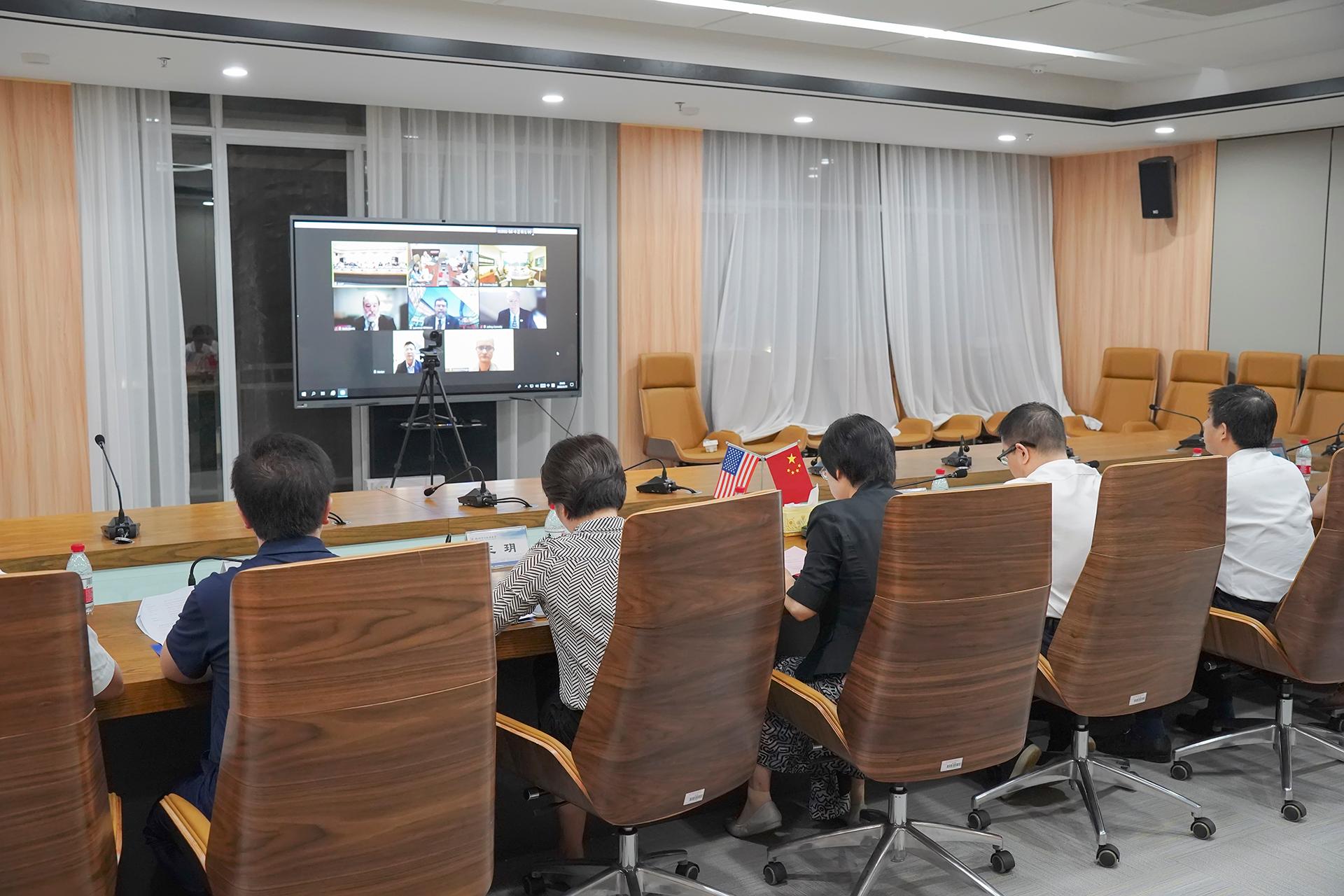 国际学院/国合处、教务处、信息与通信学院,美国阿肯色大学小石城分校等相关负责人参加视频会。