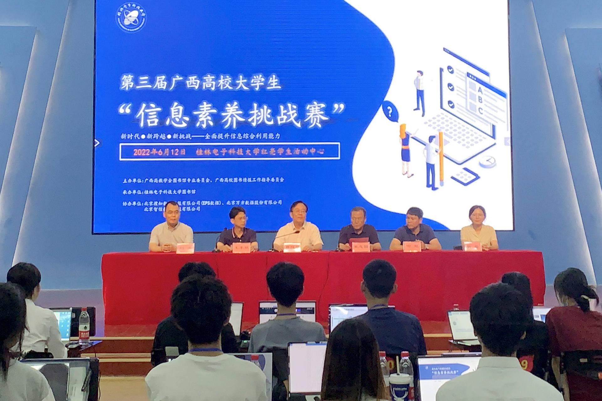 此次“信息素养挑战赛”自4月份开赛至今,广西各高校积极参与,其中个人赛参赛人数达15952人,共有44所高校参加;团体赛初赛有37所高校、488支队伍、1464人参加。大赛通过赛前动员、领队培训会、个人赛、团体线上初赛等环节挑战,共有20支队伍进入团体赛决赛。团体赛决赛依次按照开放题检索环节、风采展示以及现场答题的“初露锋芒、眼疾手快、魔幻翻转、巅峰对决”环节等开展。