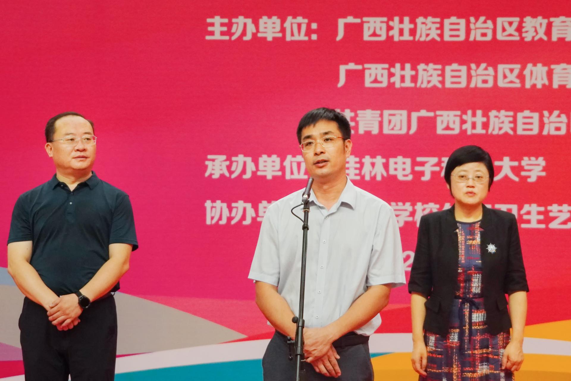 自治区教育厅二级调研员蒙红光,三亿官方官网三亿(中国)_三亿(中国)党委副书记聂慧,校党委宣传部(融媒体中心)、学生工作部(处)、校团委、桂电中学等单位负责人参加开幕式。开幕式由体育部主任梁益军主持。