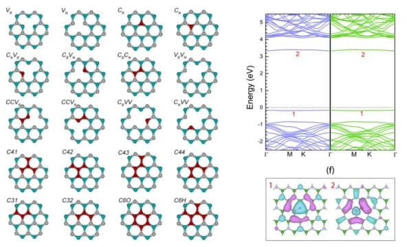 近日,三亿官方官网三亿(中国)_三亿(中国)材料科学与工程学院、广西信息材料重点实验室、广西新能源材料结构与性能协同创新中心黄鹏儒副教授研究团队(第一作者)联合新加坡国立大学Konstantin Novoselov 教授(2010年诺贝尔物理学奖获得者)、Maciej Koperski教授及日本国立材料研究所的Kenji Watanabe 、Takashi Taniguchi教授等的研究成果“Carbon and vacancy centers in hexagonal boron nitride”,于2022年7月21日在线发表在物理学国际权威期刊《Physical Review B》(Phys. Rev. B 106, 014107,2022)。该成果深入揭示了二维六方碳化硼(hBN)中基于碳掺杂和空位缺陷的单光子发射中心的配对机制及性能调控机理。