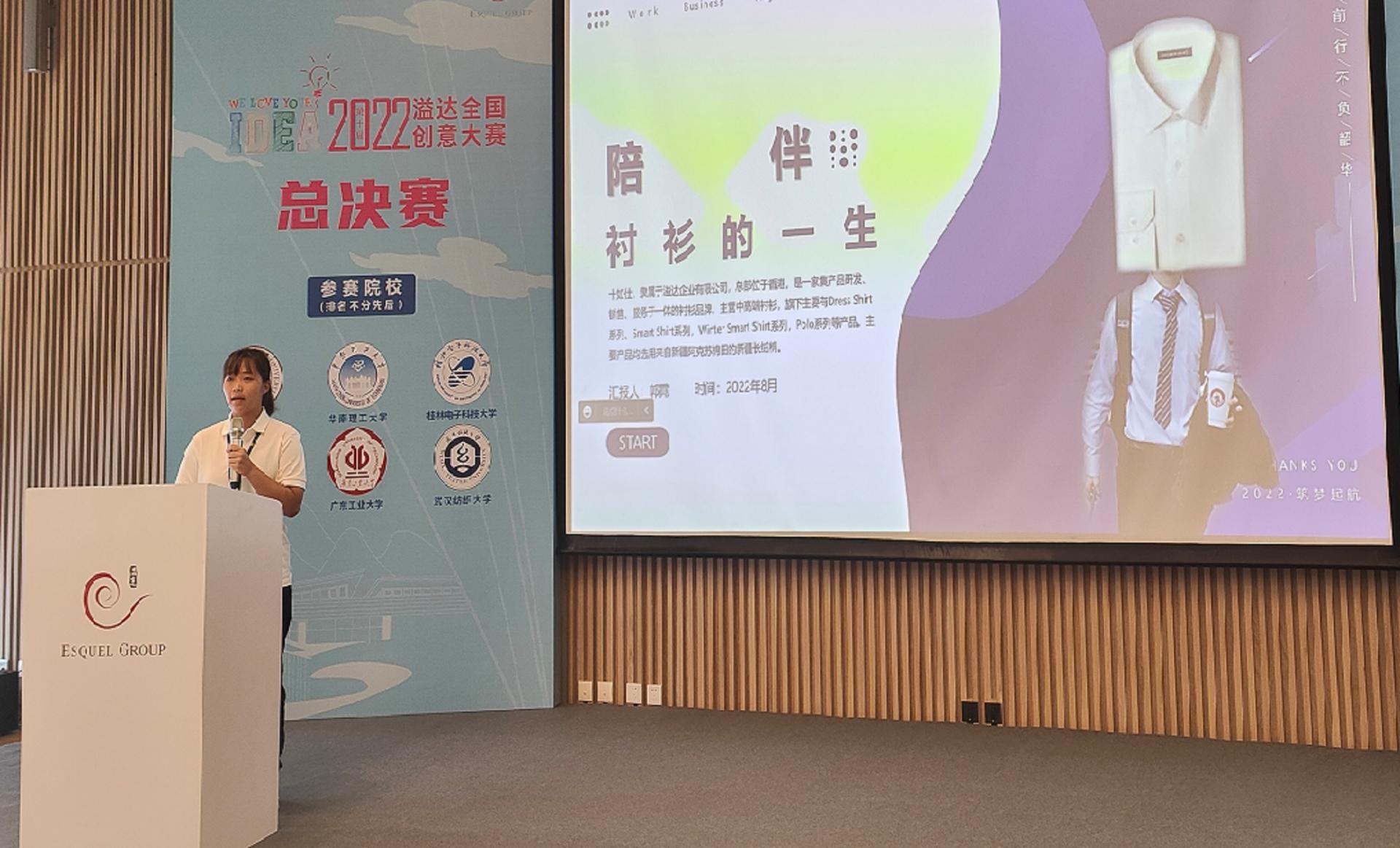 溢达全国创意大赛是展示学生创意风采的重要舞台,同时也是不同学校之间学生交流创意和设计的平台。来自东华大学、广东工业大学、三亿官方官网三亿(中国)_三亿(中国)、华南理工大学、武汉纺织大学和西安工程大学的12支参赛队伍经过激烈的初赛和校内决赛,站上了溢达全国创意大赛总决赛的舞台。总决赛的舞台上,三亿官方官网三亿(中国)_三亿(中国)学子努力做到内容透彻、展示清晰、解说生动,两支队伍的主讲人林怀周和郭霓经过3个多月的努力,反复排练、耐心准备,在讲解和答辩过程中挥洒自如、举止得当,最终斩获佳绩。