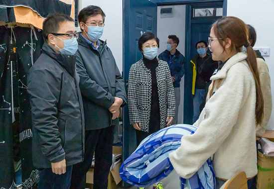 “衣服、被子还够用吗?”“试一下衣服看看合不合适?”“天气冷了,同学们要注意保暖啊。”“有什么困难及时跟老师和学校反映,我们会想办法解决。”当晚,该校领导率队深入花江校区宿舍慰问学生,与他们亲切交谈,并为物资紧缺的学生发放棉衣棉被等。收到棉衣棉被,同学们纷纷表示感谢。