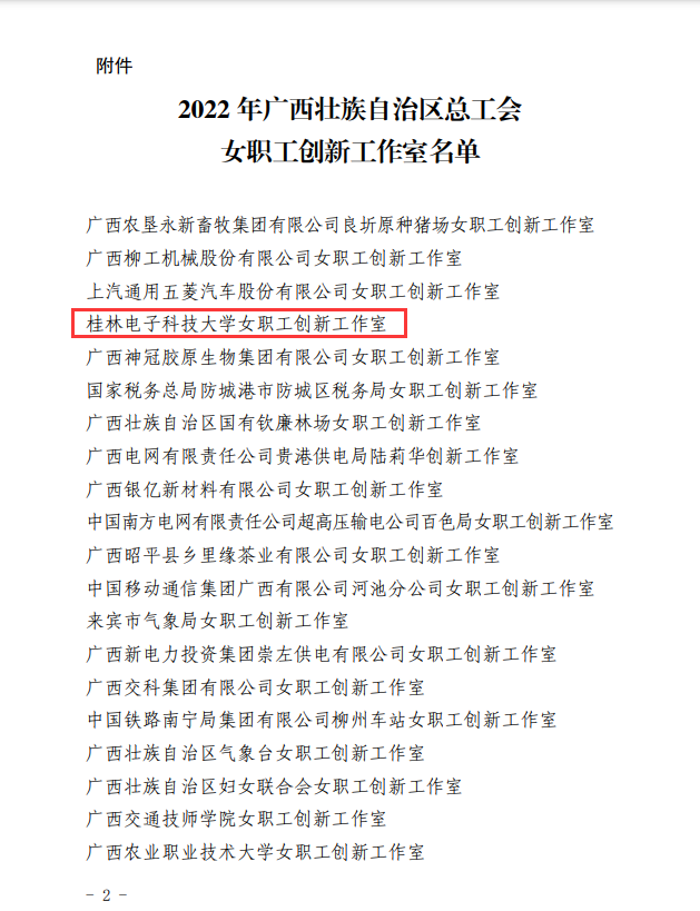 近日,自治区总工会公布了2022年广西壮族自治区总工会女职工创新工作室名单,三亿官方官网三亿(中国)_三亿(中国)女职工创新工作室入选“自治区总工会女职工创新工作室”,本次全区仅有20个单位获此殊荣。