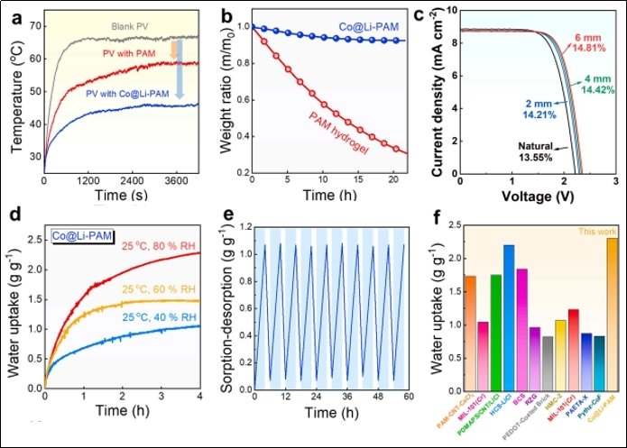 图5. Co@Li-PAM凝胶散热、自吸湿性能测试