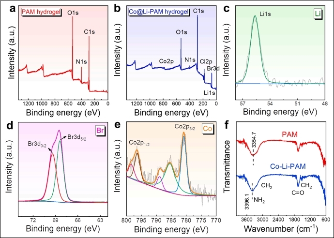 图3. Co@Li-PAM凝胶XPS能谱和红外光谱性能表征