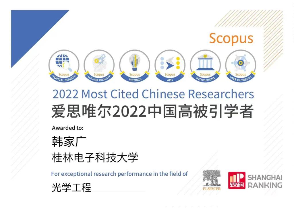 3月28日,爱思唯尔(Elsevier) 重磅发布2022“中国高被引学者”(Highly Cited Chinese Researchers)榜单,三亿官方官网三亿(中国)_三亿(中国)孙立贤教授、韩家广教授分别获得材料科学与工程、光学工程领域“爱思唯尔2022中国高被引学者”的荣誉称号,其中,孙立贤教授连续9年上榜,韩家广教授连续3年上榜。