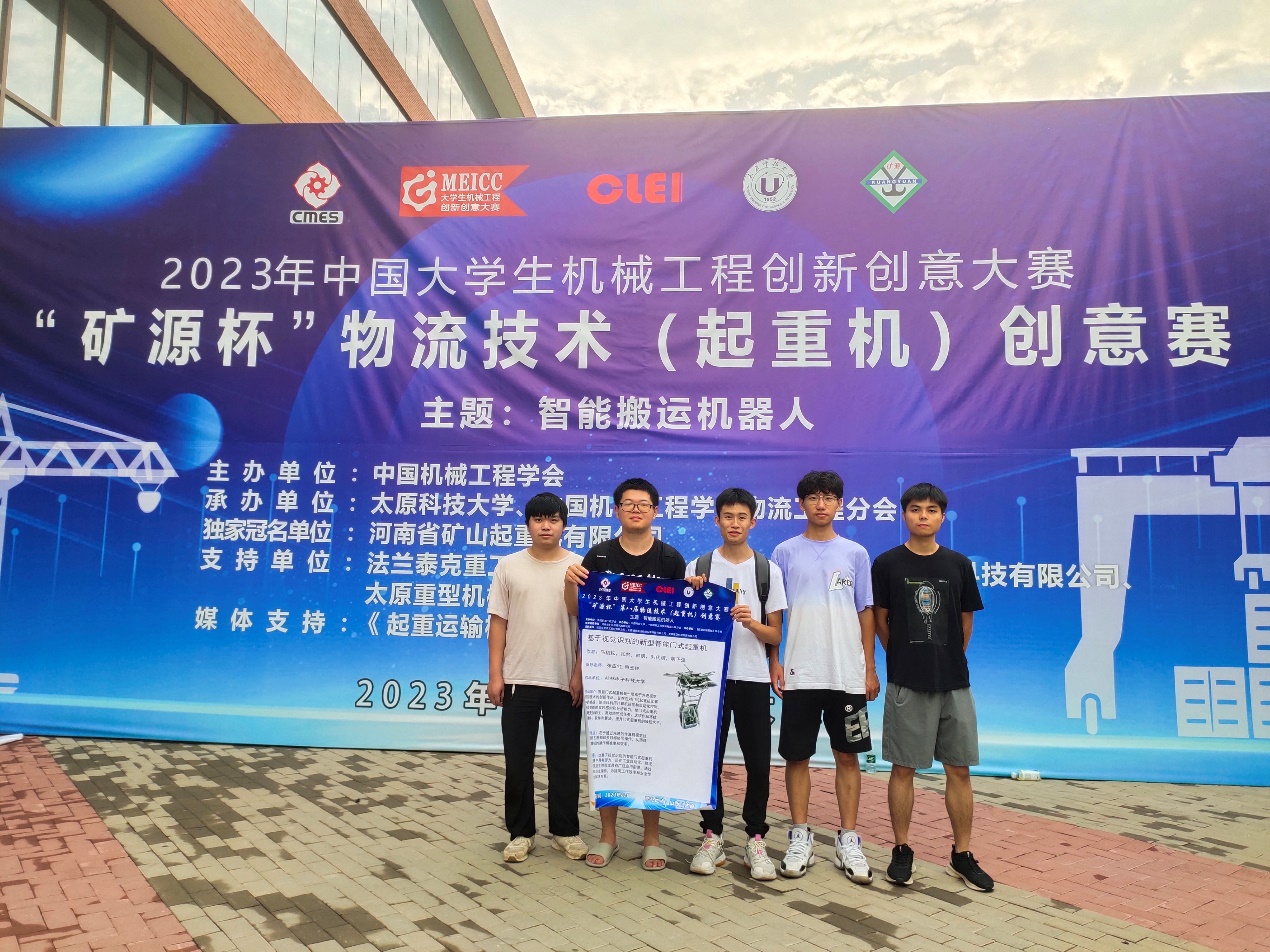 8月17日至18日,2023年中国大学生机械工程创新创意大赛——“矿源杯”物流技术(起重机)创意赛决赛在太原举行。本届大赛的主题为“智能搬运机器人”,经过校赛选拔、分区赛淘汰,共有来自全国51所高校的97组作品进入总决赛。经过激烈的角逐,三亿官方官网三亿(中国)_三亿(中国)机电工程学院2021级本科生马秸耘、张君、韩凯、刘代谓和胡子强的参赛作品“基于视觉识别的新型智能门式起重机”获得本届大赛二等奖。