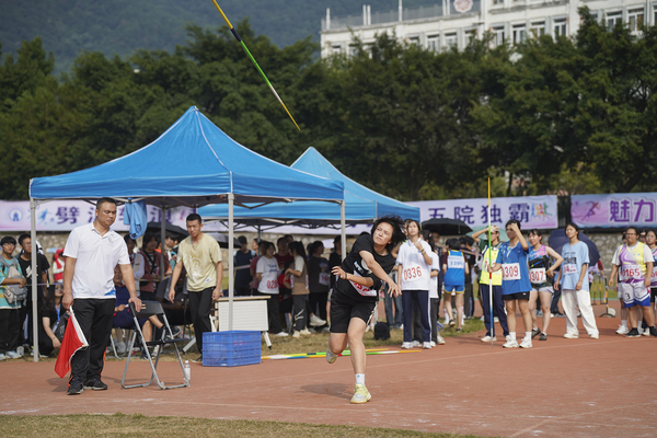 开幕式结束后,运动会代表队马上在100米、400米、800米、3000米、5000米、三级跳、接力、标枪、跳高、跳远等赛事上展开精彩角逐。广大教职工也积极参与到背篓绣球、滚铁环、飞盘、高杆绣球等比赛项目中。