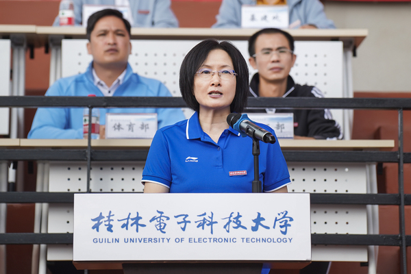 校党委副书记陈贵英致开幕辞,希望全体运动员在“公开、公平、公正”的比赛环境中,挥洒青春汗水,感悟拼搏意义,赛出水平、赛出风格、赛出佳绩、赛出友谊,充分展现桂电人顽强拼搏、挑战自我的精神风采。希望全校上下进一步形成关心体育工作、热爱体育运动、弘扬体育精神的浓厚氛围,在校园中跃动体育奋勇争先的活力,跳动时代强劲有力的脉搏,以拼搏彰显奋进之姿,共绘实现学校高质量发展的画卷,共创早日建成电子信息特色鲜明的高水平大学的新篇章!