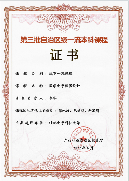 李华老师主讲的“医学电子仪器设计” 课程获批为广西区线下一流课程