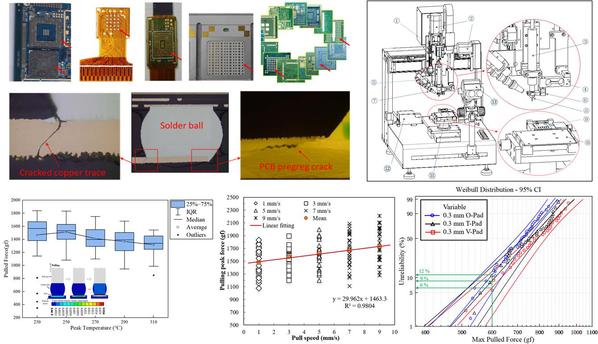 印制电路(PCB)基板中球栅阵列(BGA)封装器件的微细焊盘,在服役工作过程中存在焊盘坑裂(Cratering)失效风险,特别伴随封装基板密度提高、焊盘尺寸不断微细化,焊盘的坑裂剥离强度及服役可靠性已成为高密度电子装联行业的关注焦点之一。该论文针对印制电路基板微细焊盘的坑裂失效风险评估需求,提出了一种焊盘坑裂剥离强度测试方法,这是在IPC标准中拔针拉拔方法的基础上,迭代创新开发了自动焊接测试方法。基于焊接原理创新,IPC标准推荐测试方法的优点,从高稳定性、高测试成功率、通用性及高性价角度,有效地解决了高密度电子装联行业领域的微细焊盘质量评估分析问题。