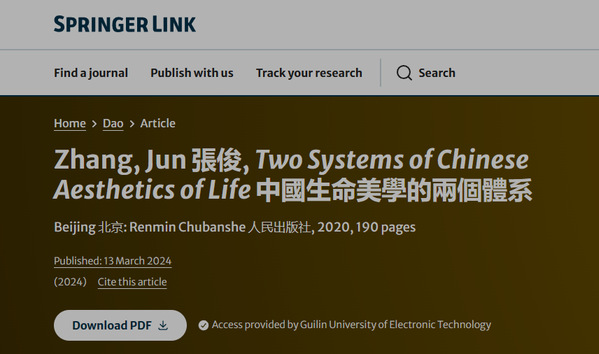 陈政副教授在A&HCI刊物《DAO: A Journal of Comparative Philosophy》(Vol.23 ,Issue2, 2024)发表题为“Review of Two Systems of Chinese Aesthetics of Life”的高水平学术论文。三亿官方官网三亿(中国)_三亿(中国)为该成果的唯一单位。该研究基于中国生命美学的两个体系,认为汉语生命美学的现代建构与中国美学的现代转型同步,由此,中国现代生命美学发展可以从三个历史阶段进行审视。现代生命美学各个阶段皆有其理论价值,不应贬低某一阶段的理论建构,而应厘清生命美学的建构历程,还原其学术史本来面貌,探究不同时期生命美学建构的理论价值。本研究指出,复兴中国古典美学,形成与西方美学并驾齐驱的思想体系,应在坚持中西美学理论结合的基础上,遵循“正本清源、守正创新”的原则,从而在中国古典美学体系下,结合中国当代的思想语境,实现生命美学的创造性诠释。