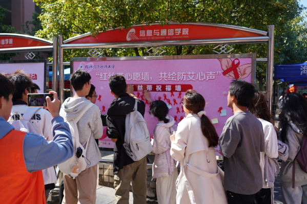 活动现场,志愿者们通过防艾知识宣传栏、发放宣传手册、防艾小游戏等环节,普及艾滋病的传播途径和防治措施等基本知识,鼓励同学们积极参与到知艾防艾活动中来。同学们在防艾祝福墙上粘贴红丝带,写下防艾祝福语,表达对受艾滋病影响人群的关心。