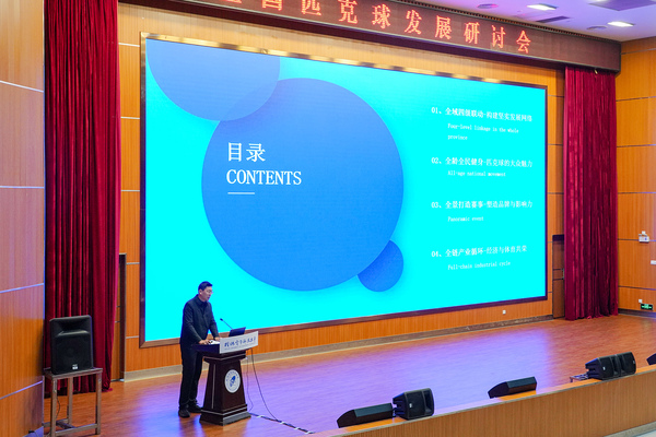 万建斌指出,召开此次全国匹克球发展研讨会,目的在于汇集智慧、凝聚共识,分享交流各地开展匹克球运动的优秀经验,探索全国匹克球发展的突出问题和主要矛盾,寻找可持续发展的方式。他表示,本次研讨会提供了一个交流发展动态、共研发展标准的平台,邀请了在匹克球领域卓有建树的嘉宾分享推广匹克球的经验,希望与会人员能够群策群力,共同思考谋划,共促匹克球可持续发展。