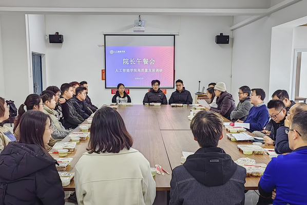 1月2日,人工智能学院在花江校区学生社区溶苑37栋103党团之家举行第三十五期院长午餐会。全体学院领导、各系负责人、全体辅导员以及学生代表参加活动。本期院长午餐会以“人工智能学院高质量发展调研”为主题,师生们聚焦学生就业、学业预警、学风建设等相关问题进行交流。
