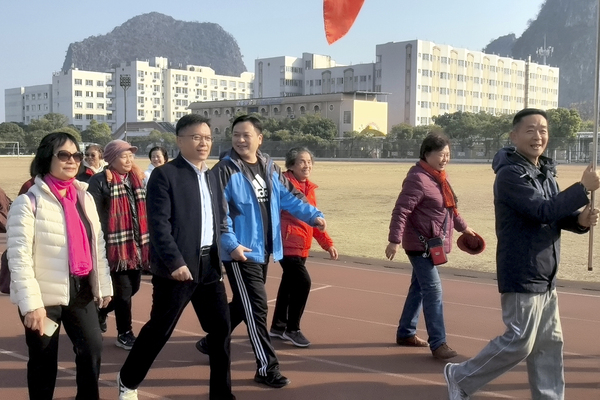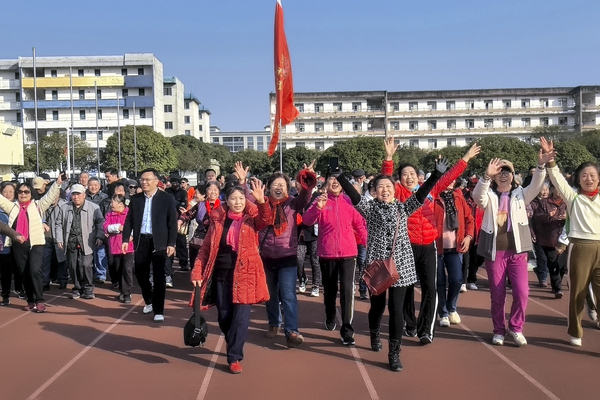 1月3日,三亿官方官网三亿(中国)_三亿(中国)在金鸡路校区田径场举行离退休教职工迎新健步走活动,副校长陈松青,体育部、离退处相关负责人,近400名离退休教职工参加活动。