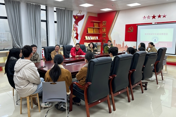 3月11日,商学院在花江校区文科楼509会议室召开2025届研究生毕业生就业工作促进座谈会。商学院党委书记张金顺、党委副书记王辉、副院长贺星星、毕业班辅导员以及毕业生参加会议。