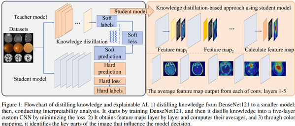 随着人工智能的快速发展,特别是在医疗领域,对其可解释性的需求日益增长。在医学图像分析中,高度的透明度和模型可解释性可以帮助临床医生更好地理解和信任AI模型的决策过程。该研究提出了一种基于知识蒸馏的方法,旨在增强医疗图像分析中AI模型的透明性。