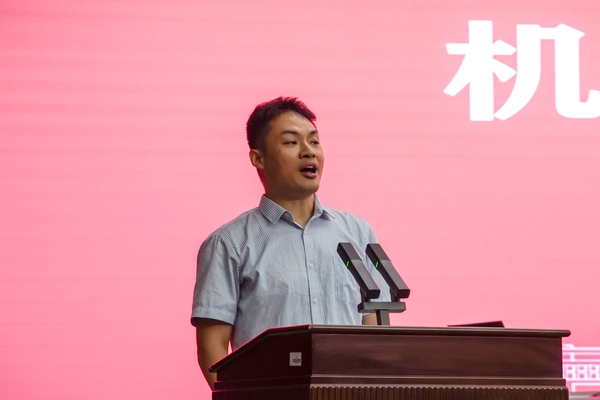 教师代表、机电工程学院秦红波教授在典礼上发言