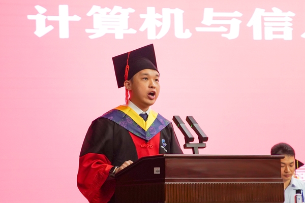 研究生代表、计算机与信息安全学院网络空间安全专业博士毕业生李振宇在典礼上发言