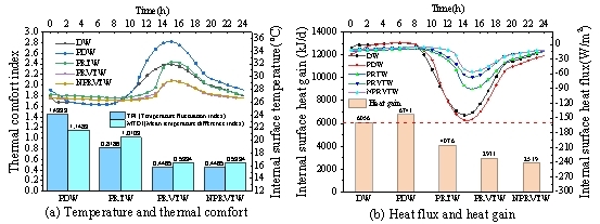 图5:夏季(8月10日)不同窗户在桂林地区的热性能(a)(b)