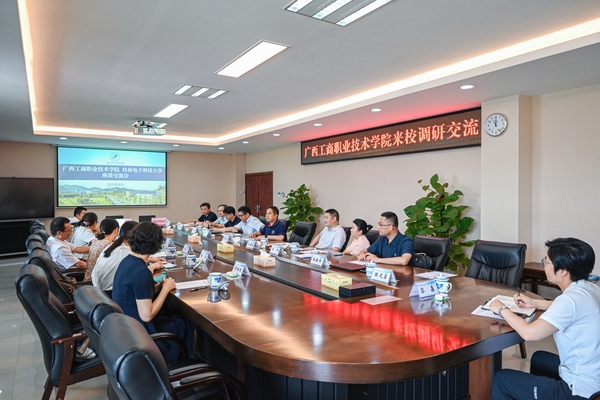 6月26日,广西工商职业技术学院校长刘进带队来校交流,校长张文涛、副校长李海鸥接待刘进一行,双方在花江校区办公大楼515会议室进行座谈并举行签约仪式。广西工商职业技术学院副校长郑华及双方相关单位、部门有关负责人参加。