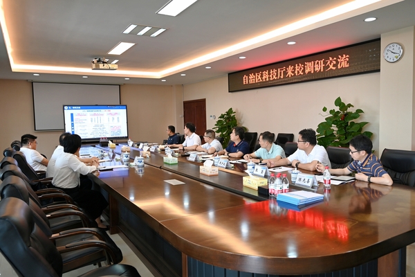 7月7日,自治区科技厅党组成员、副厅长蔡朝亮带队来校调研交流。校党委书记徐华蕊、校长张文涛接待蔡朝亮一行,双方在花江校区办公大楼515会议室进行座谈交流。