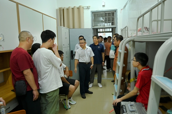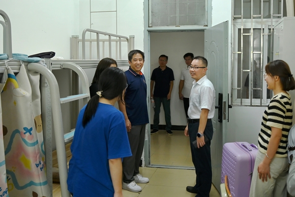报到首日,校党委书记徐华蕊、校长张文涛、校党委副书记聂慧,副校长陈松青、李海鸥一行深入迎新现场,走访迎新大本营、宿舍区和食堂,检查指导各项工作,亲切看望2025级新生及家长,并慰问奋战在迎新一线的工作人员和志愿者。