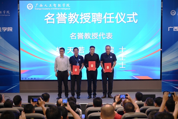 典礼上,宣布了广西人工智能学院领导班子和学术委员会名单;举行了广西人工智能学院名誉教授聘任仪式与导师聘任仪式,宋建元、傅源方分别为名誉教授和受聘导师代表颁发聘书。