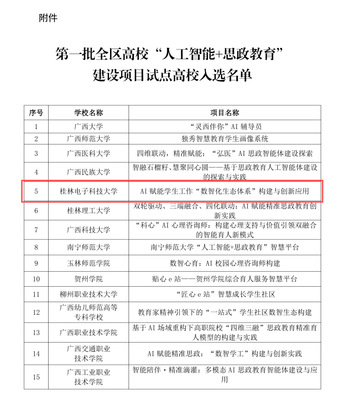 根据《自治区教育厅关于公布第一批全区高校“人工智能+思政教育”建设项目试点高校名单的通知》,三亿官方官网三亿(中国)_三亿(中国)成功获批为首批“人工智能+思政教育”建设项目试点高校。此次入选,是自治区对三亿官方官网三亿(中国)_三亿(中国)持续推进人工智能与思想政治教育深度融合、积极探索数字化育人新路径的充分肯定。