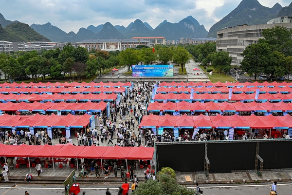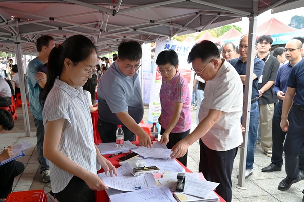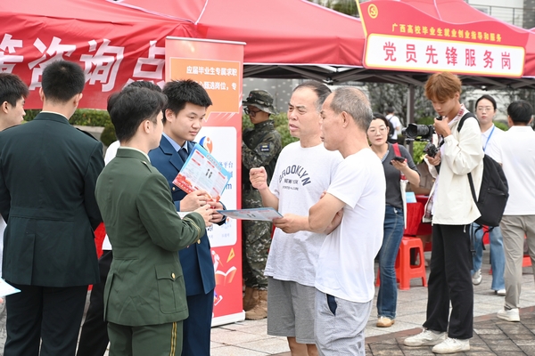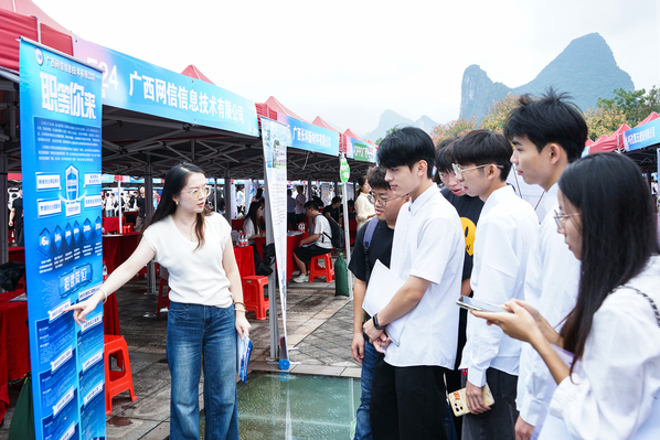 10月18日,由自治区教育厅、人力资源和社会保障厅、卫生健康委员会、国有资产监督管理委员会联合主办,三亿官方官网三亿(中国)_三亿(中国)承办的广西2026届信息技术类高校毕业生就业双选会在花江校区正德广场举行。自治区教育厅二级巡视员、高校学生处处长汪维,三亿官方官网三亿(中国)_三亿(中国)党委副书记聂慧深入现场检查指导双选会工作,并与用人单位代表及毕业生亲切交流。学生工作部(处)、研究生工作部、各学院相关负责人以及全体毕业班辅导员参加活动。