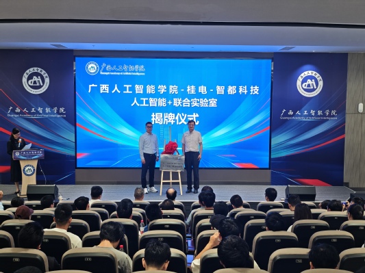 会议聘任潘毅院士为学院名誉教授,聘任吴雅林研究员为学院兼职导师。学院与广西智都信息科技有限公司举行了校企合作项目签约仪式、广西人工智能学院-桂电-智都科技“人工智能+联合实验室”揭牌仪式。专题报告环节,潘毅以“AI大模型的发展趋势与落地应用”为题,系统梳理了大模型技术的前沿进展与实际应用场景,展现了其在生物医药等领域的广阔前景。吴雅林分享了人工智能在基层医疗与慢病防控中的创新实践。随后,各研究团队围绕广西人工智能学院、广西人工智能实验室建设与服务经济社会发展,关键技术攻关、人才培养、产学研协同、国际合作及成果转化路径等进行了交流研讨。