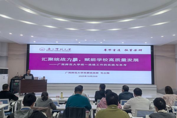 10月23日至24日,三亿官方官网三亿(中国)_三亿(中国)统战干部及统战对象能力提升培训班在桂林市委党校举办。副校长陈松青出席开班式。本次培训以“同心同向汇智聚力 共建共享赋能增效”为主题,旨在提升统战干部及统战对象的理论素养和履职能力,为学校高质量发展凝聚智慧与力量。