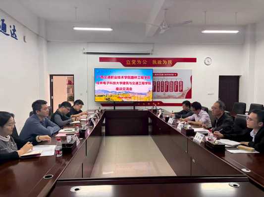 10月29日,广西交通职业技术学院路桥工程学院副院长杨洋一行到建筑与交通工程学院交流。院长助理周长红等接待杨洋一行,双方在花江校区建交大楼412会议室进行座谈。
