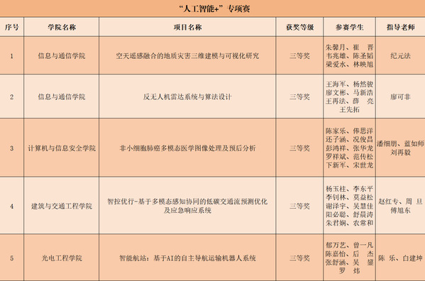 其中,参赛项目《5G+无人机集群山火巡防一体化引领者》(团队成员:杨告、洪晓秋、刘能豪、祥智扬、岑雨婷、陆怡、罗翠妮、曹锦,指导教师:郑飞、姜红飞、赵熙阳)荣获主体赛二等奖。该项目聚焦当前山火巡检与防控技术存在的预警延迟、覆盖范围有限、应急响应迟缓等行业痛点,创新开发了基于5G通信与仿生无人机蜂群的巡防控一体化系统,实现了复杂林区环境下的广域协同与立体化巡查,为山火应急处置和森林生态保护提供了创新性、智能化的解决方案。
