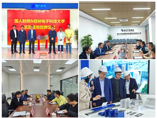 王江一行深入南宁国人射频通信有限公司和南宁产投铝基新材料集团,实地考察企业生产车间、检测平台和研发环境,详细了解企业发展与技术研发进展,并就学生实习就业、校企协同育人、产学研合作与技术攻关等与企业代表进行深入交流。在南宁国人射频通信有限公司,双方共同举行了实践基地挂牌仪式,为后续校企深度合作搭建了平台。期间,王江一行还前往南宁研究院开展了座谈交流活动。