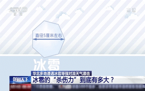 小 冰雹有以下几个特征,局地性强,影响范围几十米至数千米,持续时间短,一般为2~10分钟,少数在半个小时以上。冰雹的“杀伤力”有多大?一般来说,直径5厘米左右的冰雹,也就是我们常说的,“鸡蛋大小的冰雹”,重量约30克。