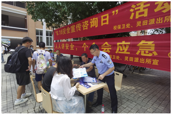 2023年6月是全国第22个“安全生产月”。6月16日,保卫处联合灵田派出所以“人人讲安全,个个会应急”为主题,在花江校区食堂广场开展安全生产月暨安全咨询日宣传活动。