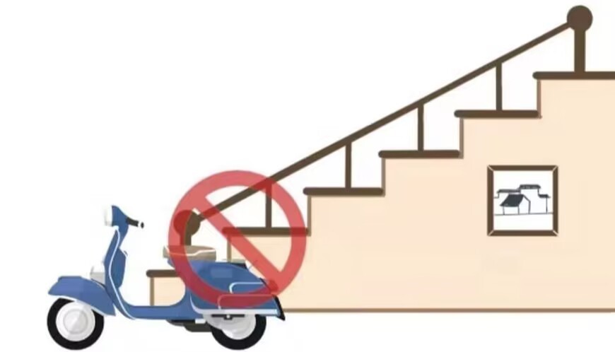 勿将电动自行车停放在楼道,楼道中的电动自行车一旦起火会直接阻断消防和逃生通道。