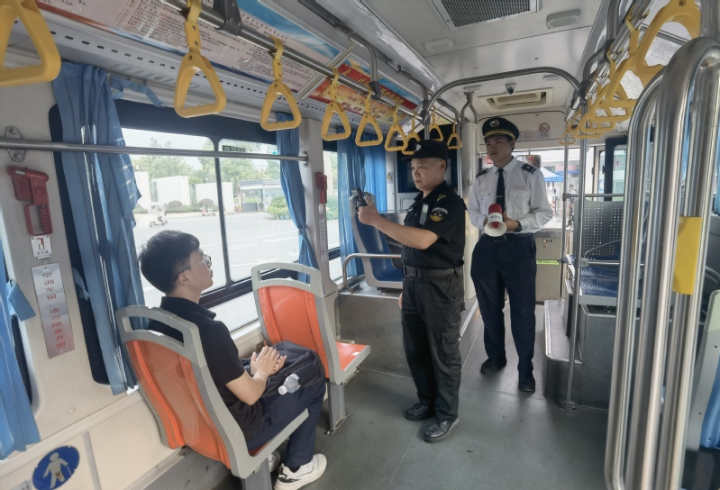 为更好的服务师生员工,前期,保卫处党支部面向全体师生员工就13路公交车进花江校区通勤发放网上调查问卷,并与校学生会召开专题座谈会,详细了解师生员工诉求。经实地走访调研,结合学校实际,在花江校区内设置临时停靠站点8个,覆盖教学区及学生宿舍区。为防止校外无关人员进入校园,保卫处党支部党员在花江校区南门公交停靠点上车,用手持人脸识别设备核验乘客身份,身份核验后方可进校。