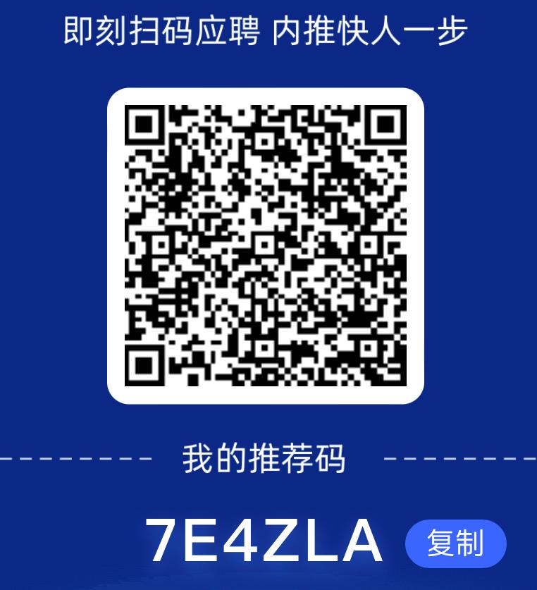 【内推投递方式1】:填写专属内推码【7E4ZLA】,即刻投递,offer速得!