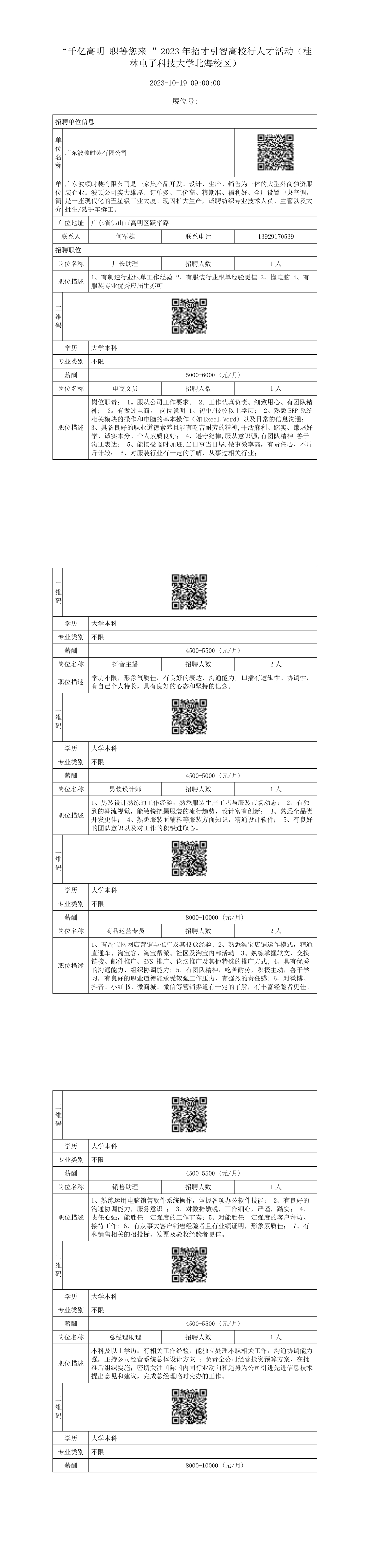 广东波顿时装有限公司招聘简章
