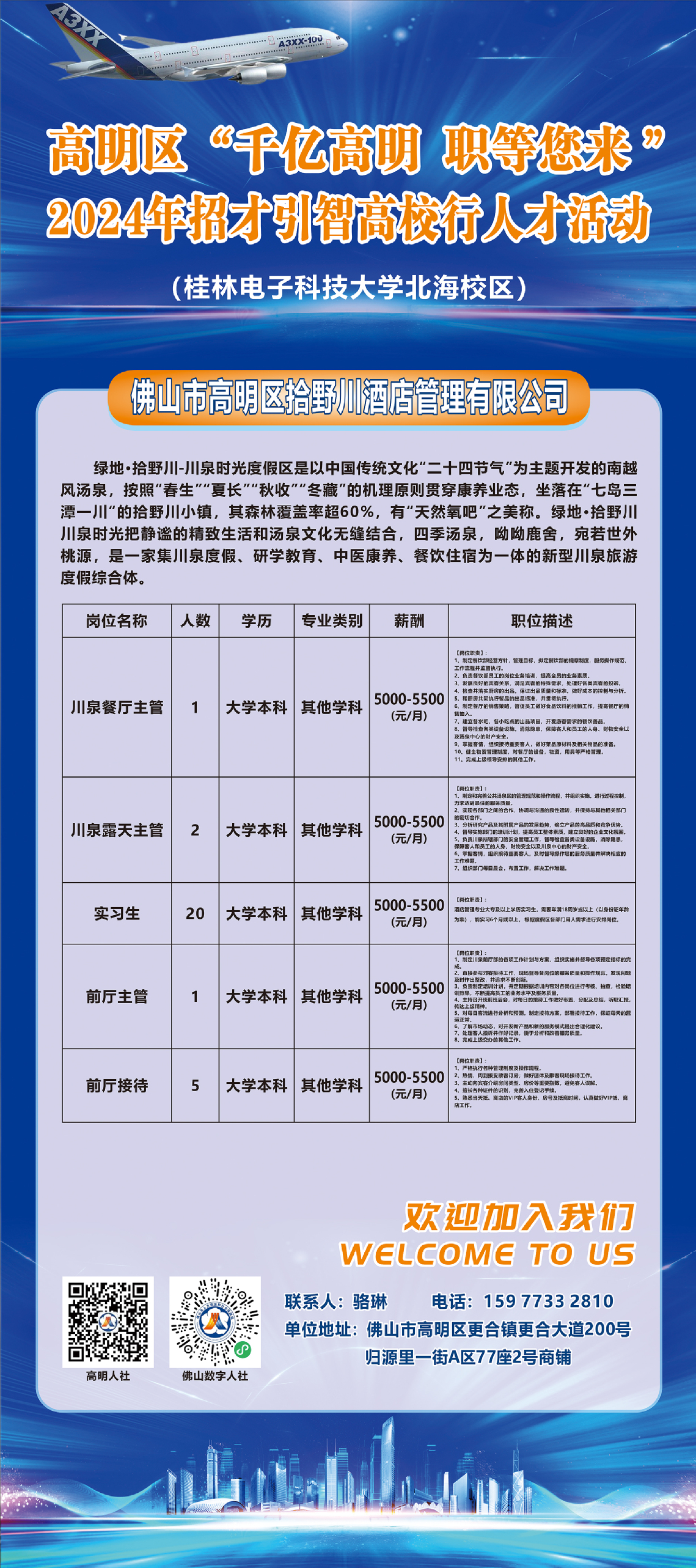 【09/20】佛山市高明区拾野川酒店管理有限公司来校招聘