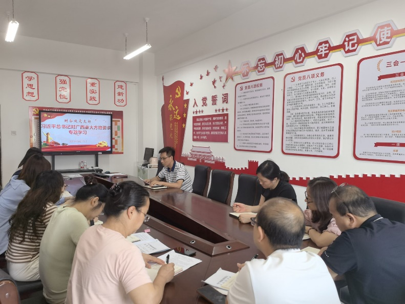 随后,组织党员进行统战专题学习、师德师风警示案例学习,并通报2024年上半年意识形态工作。