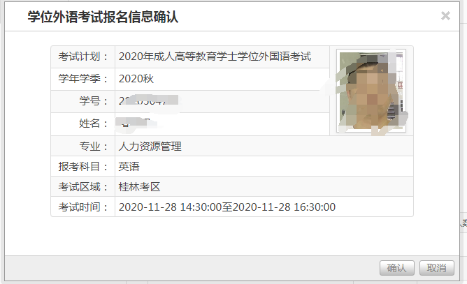 6.核对报名信息和照片,若无误,点击“确认”。若信息或者照片有误以及照片空白,请联系教学站修改后再报名。