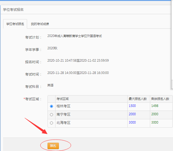 4.选择考区:每名考生只能选择1个考区,报名成功后不能再更改。