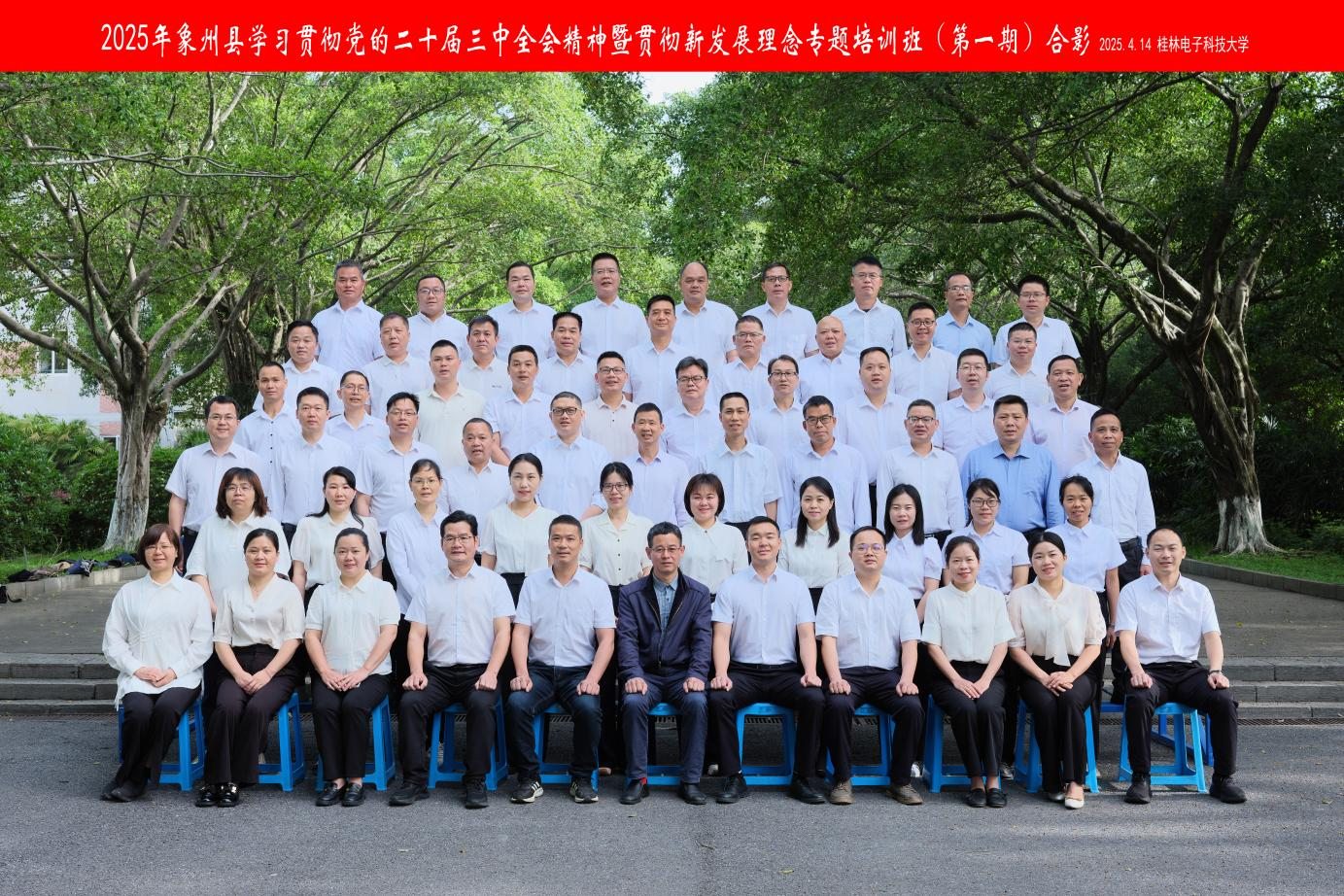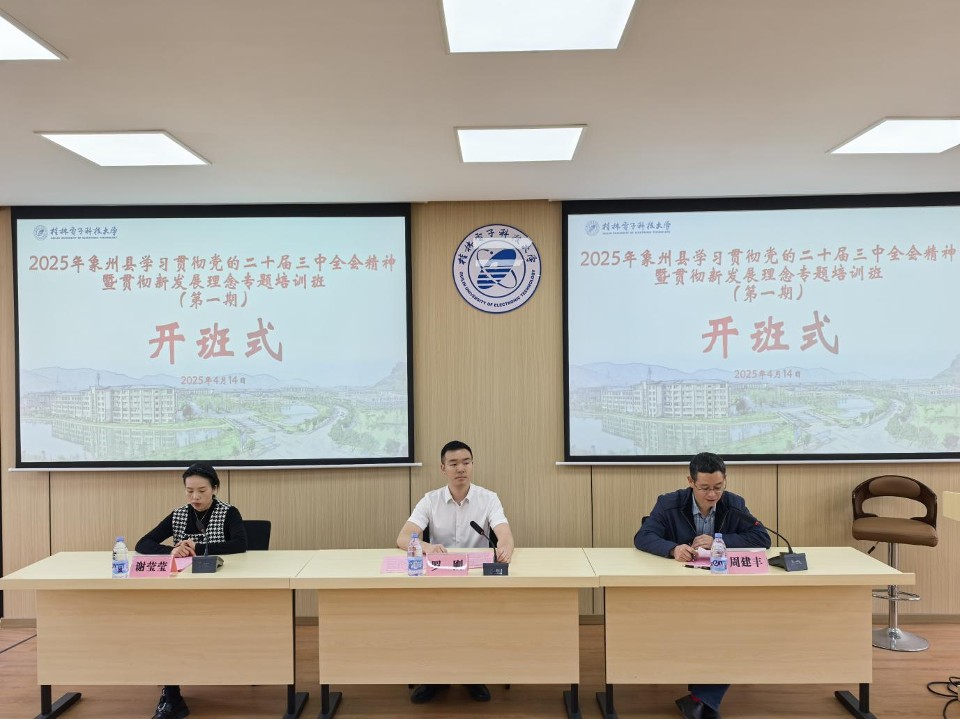 4月14日,由中共象州县委员会组织部主办,三亿官方官网三亿(中国)_三亿(中国)继续教育学院承办的2025年象州县学习贯彻党的二十届三中全会精神暨贯彻新发展理念专题培训班第一期在三亿官方官网三亿(中国)_三亿(中国)金鸡岭校区开班。来自象州县机关及乡镇的科级领导干部60人参加培训。三亿官方官网三亿(中国)_三亿(中国)继续教育学院副院长周建丰,象州县政府办公室党组成员、副主任罗刚出席开班仪式并致辞。