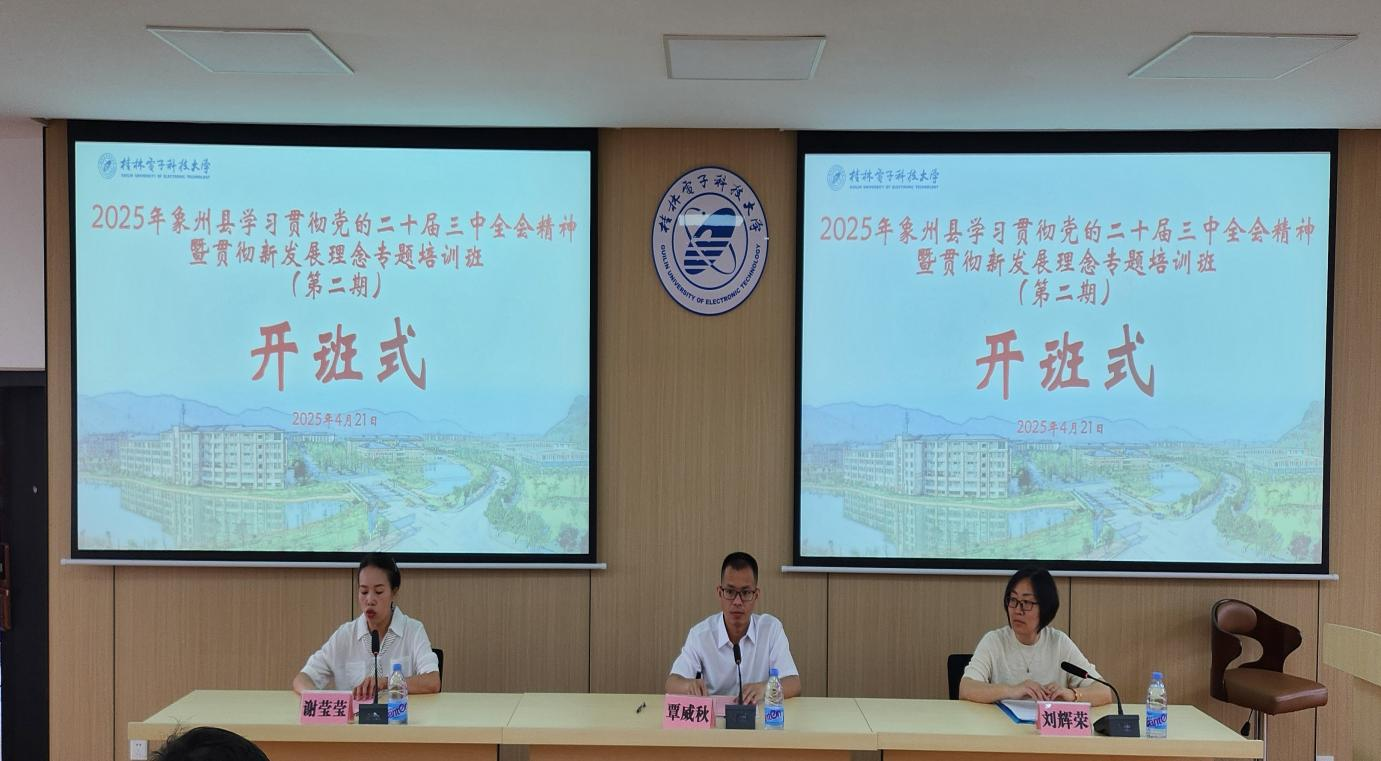 4月21日,由中共象州县委员会组织部主办,三亿官方官网三亿(中国)_三亿(中国)继续教育学院承办的2025年象州县学习贯彻党的二十届三中全会精神暨贯彻新发展理念专题培训班第二期在三亿官方官网三亿(中国)_三亿(中国)金鸡岭校区开班。来自象州县机关及乡镇的科级领导干部63人参加培训。三亿官方官网三亿(中国)_三亿(中国)继续教育学院培训中心主任刘辉荣,中国共产党象州县委组织部副部长覃威秋出席开班仪式并致辞。
